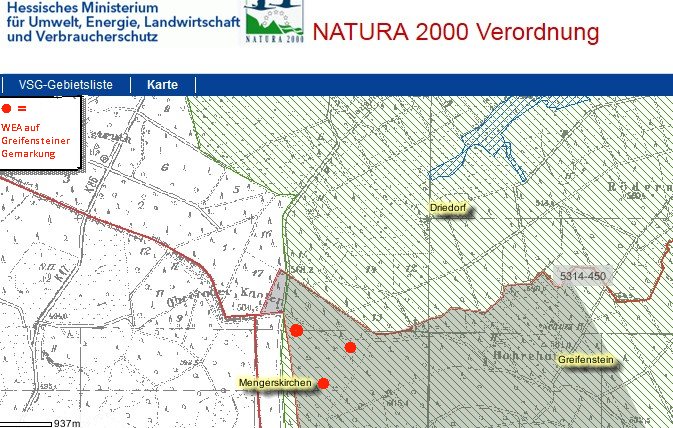 Demnach liegen drei Anlagen der Gemeinde Greifenstein im Vogelschutzgebiet.